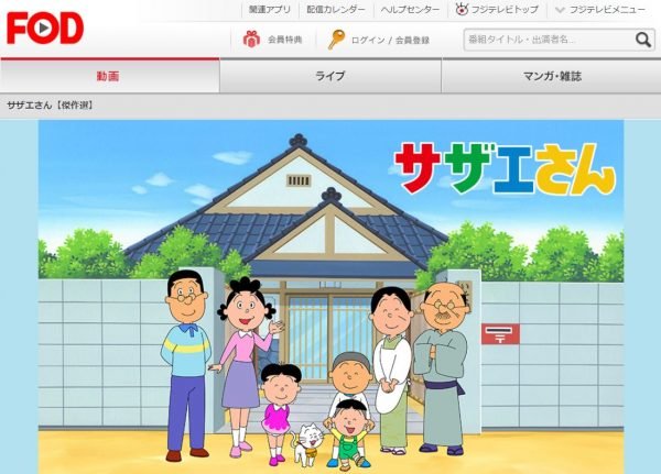 FOD(フジテレビオンデマンド)は『サザエさん』初期(初回)作品の動画を無料視聴できる