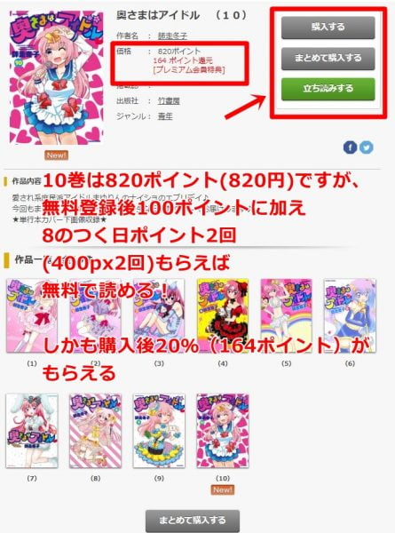 『奥さまはアイドル』最新刊10巻以外もお得に読むことができますね。
