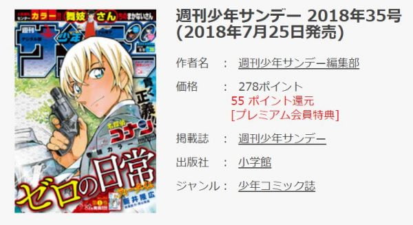 さらに、ゼロの日常が連載されている週刊サンデーも読むことが出来ます。