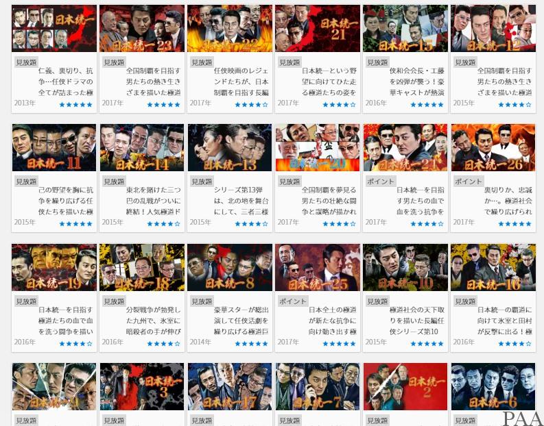 U-NEXTではこのぐらい「日本統一」の動画が揃っています。