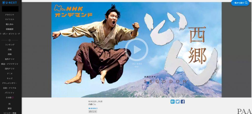 それにちゃんとU-NEXTでは「西郷どん」の見逃し動画が配信されていました。