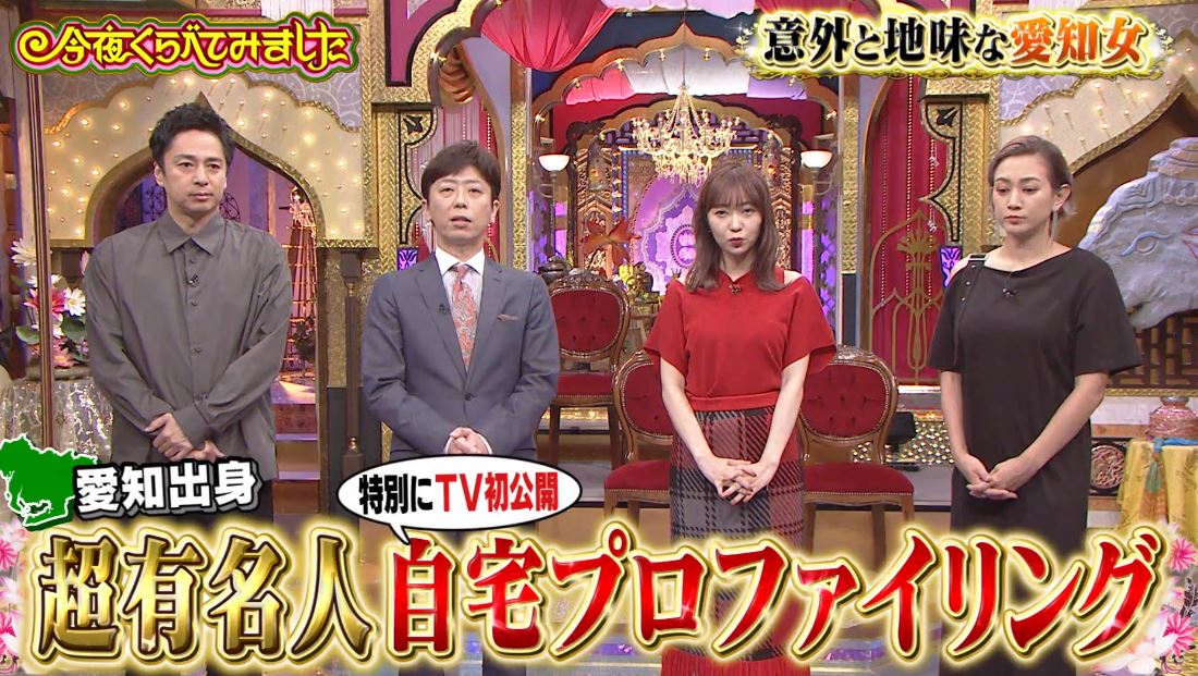 9月4日(水)放送の「今夜くらべてみました」は、「意外と地味な愛知女」をテーマに、フィギュアスケート宇野昌磨選手の弟でモデルの宇野樹、大久保佳代子、芸人の小川暖奈(スパイク)、現役女子高生モデルの生見愛瑠、バスケットボール日本代表候補の馬瓜エブリンが登場。