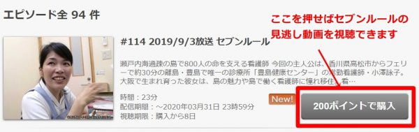 セブンルール前田敦子さんの動画は200ポイントですので、ボーナスポイントを1回もらって、そのポイントを使えばFODで無料視聴できますね。
