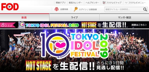 ただ、TIF2019のHOT STAGEの見逃し動画を見れるのはFODプレミアムだけです。