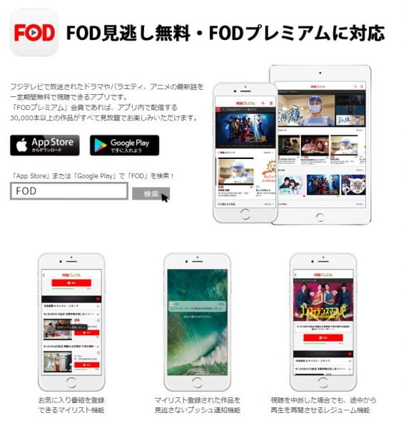 それとFOD(フジテレビオンデマンド)には、Amazonプライムでは見られず、FODしか見られない作品も数多くあります。