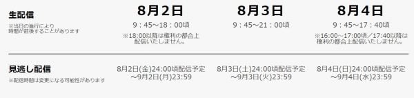 見逃し配信はライブ終了後の当日深夜0時頃に公開されます。
