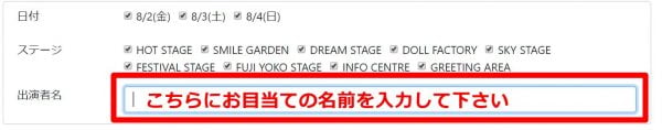 ↑こちらを押して開いたら、お目当てのアイドルの名前を空欄に入れるだけで、いつどのステージに出演されるか、一発でわかります。