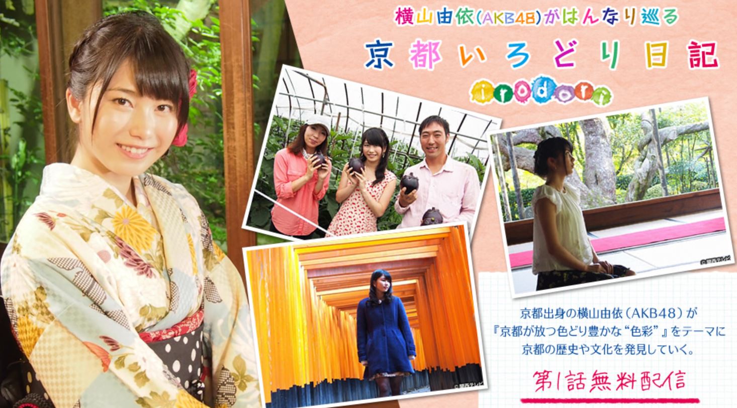 『横山由依(AKB48)がはんなり巡る 京都いろどり日記』は2013年7月17日から日本の関西テレビで毎月1回放送されている情報旅番組です。