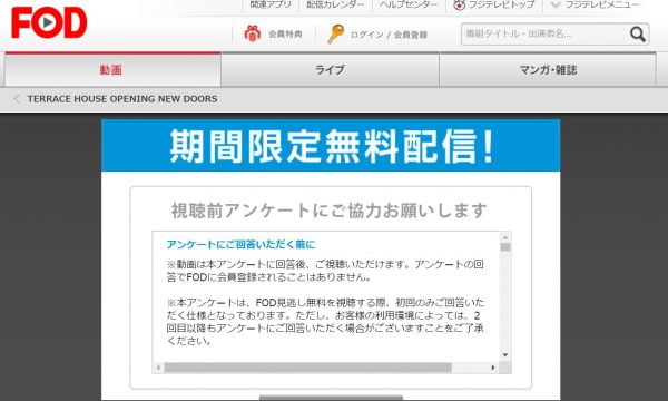 この見逃し無料配信は非会員でもFODを楽しめます。