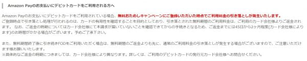 Amazon Payのお支払いにデビットカードをご利用されている場合、無料おためしキャンペーンにご登録いただいた時点でご利用料金の引き落としが発生いたします。