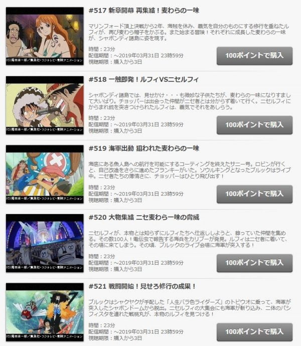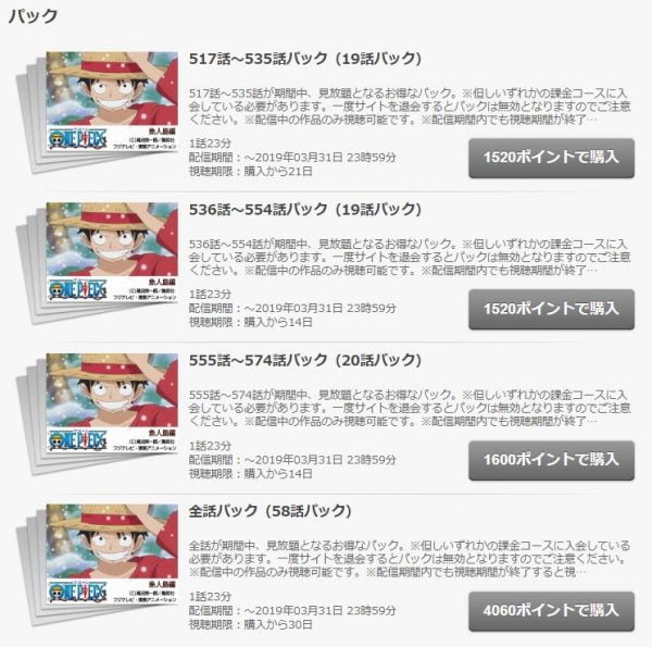例を挙げると、人気作品のワンピースやテラスハウスなども放送終了後見逃し配信を非会員で観ることができます。