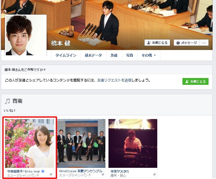 それを裏付けるのは、橋本健神戸市議のFacebookに今井絵理子さんがお気に入りに入っていました。