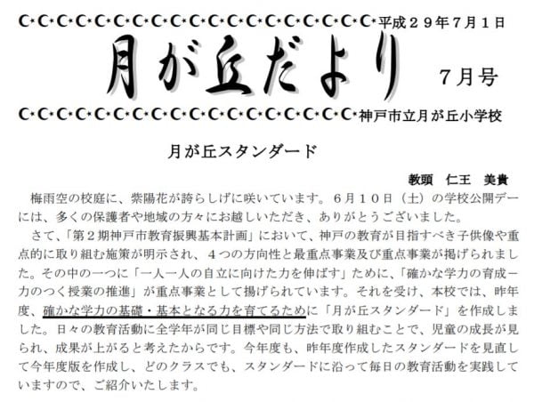 神戸市立神出小学校 教員から2015年4月に月が丘小学校 教頭に昇任されています。