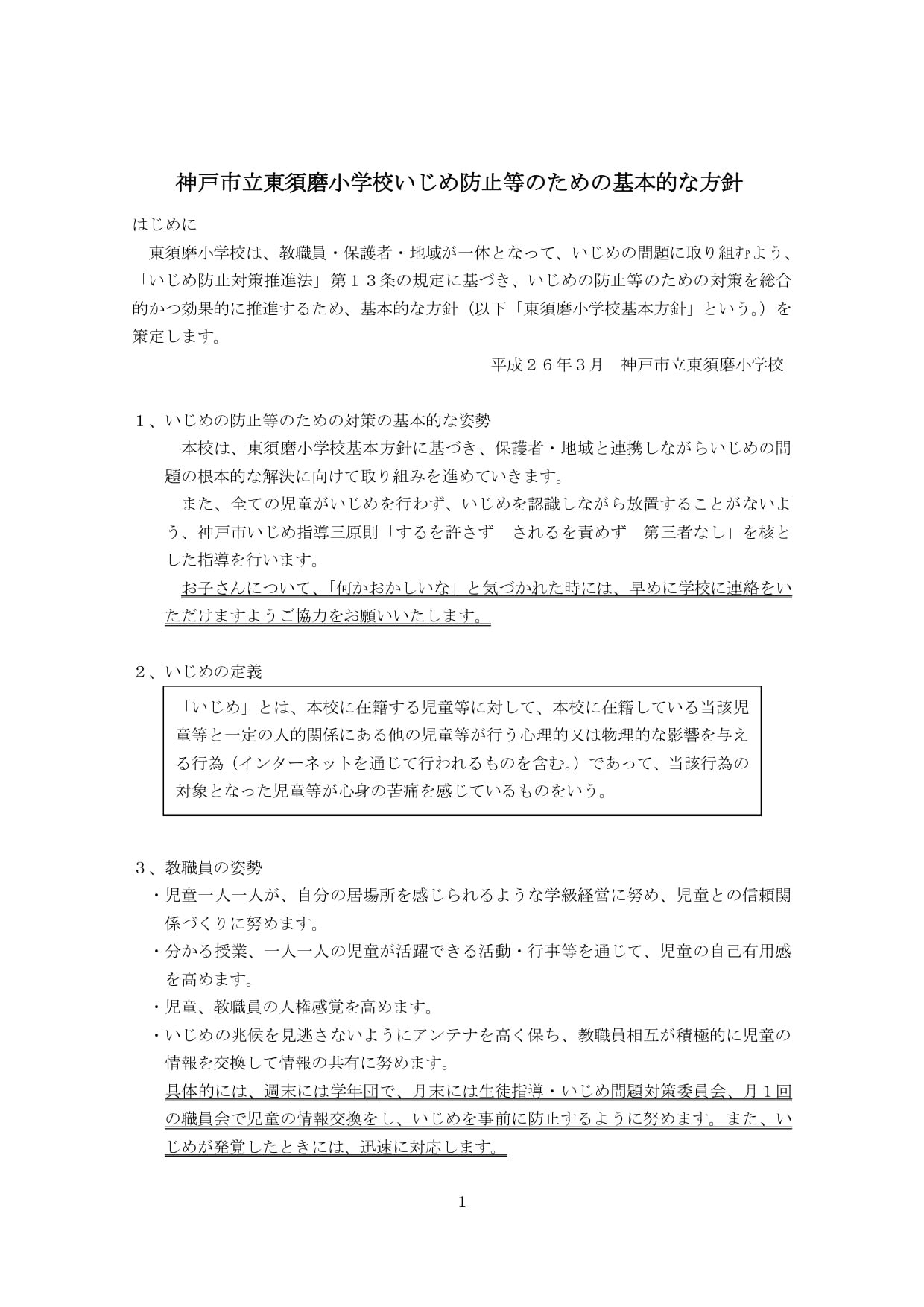 出展;H31 改訂 神戸市立東須磨小学校いじめ防止等のための基本的な方針.pdf