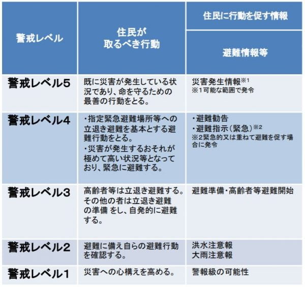 ですが、避難命令という警戒レベルはありません。