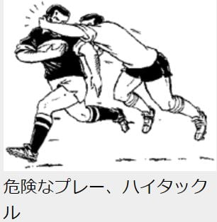 ・肩から上にタックル(ハイタックル)したり、タックル時相手を頭から落とすなどの危険なタックル・チャージ。