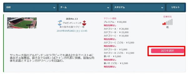 そこで、ラグビーワールドカップ2019のチケットの残りの在庫をチェックしてみました。